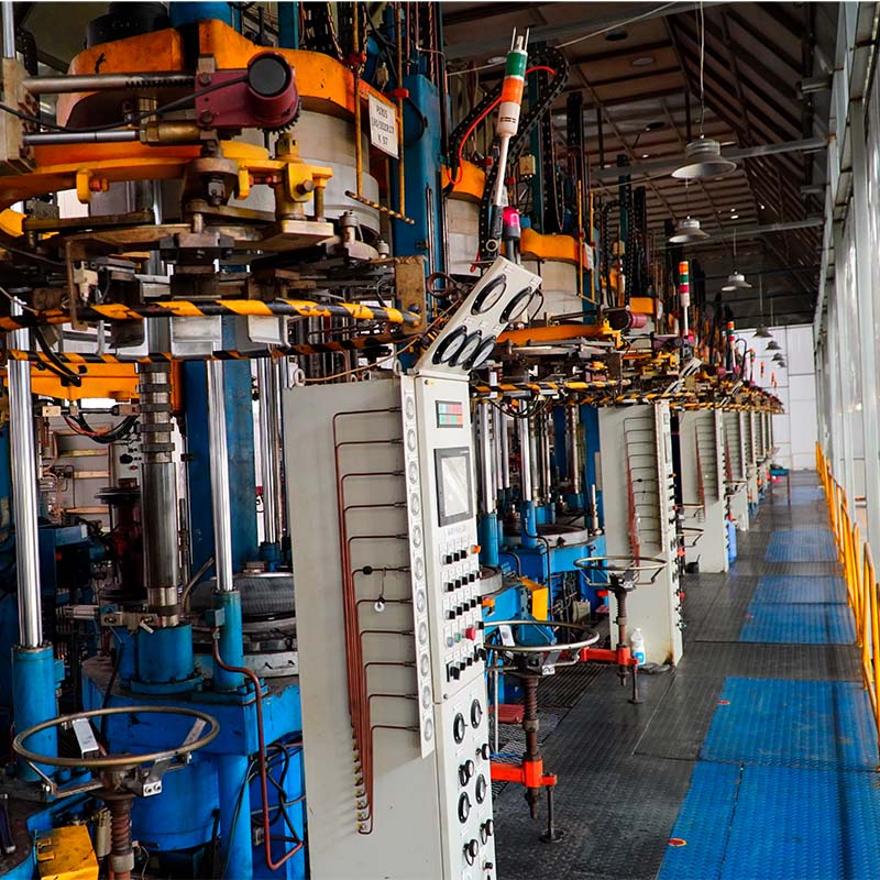 DUROMAX TIRE uses automated hydraulic curing machines to ensure uniform pressure and temperature control during vulcanization.